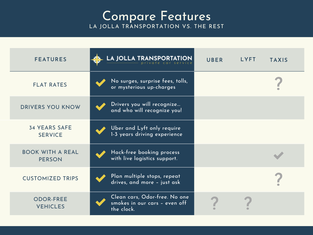 We care about you and your travel plans. We treat you like family. And we go the extra mile when it matters most. At La Jolla Transportation, your vacation starts the moment we open the door for you.
